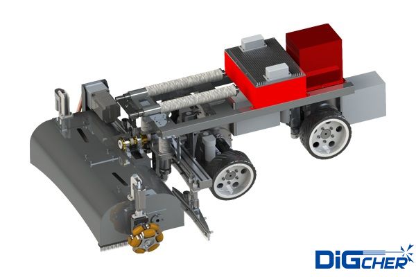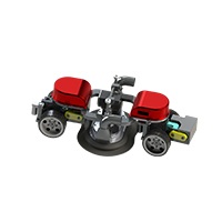 機(jī)器人采用四輪驅(qū)動(dòng),差速轉(zhuǎn)向,具有小曲率通過能力,可跨越焊縫等障礙,負(fù)載能力大,抗風(fēng)能力強(qiáng),可以拖拽動(dòng)力電纜、高壓管、清潔劑箱等爬上超過120米高的風(fēng)電塔筒;